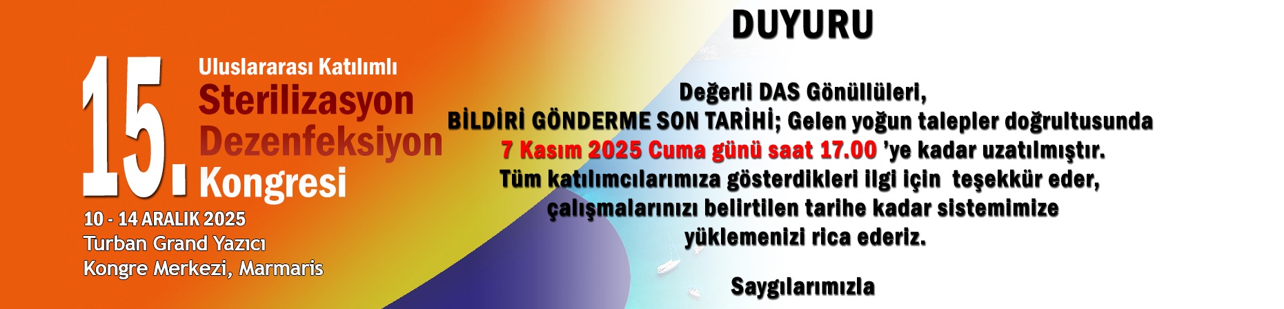 "MERKEZİ STERİLİZASYON ÜNİTESİ EĞİTİM PROGRAMI" Dezenfeksiyon Antisepsi Sterilizasyon (DAS) Derneği tarafından düzenlenecektir.