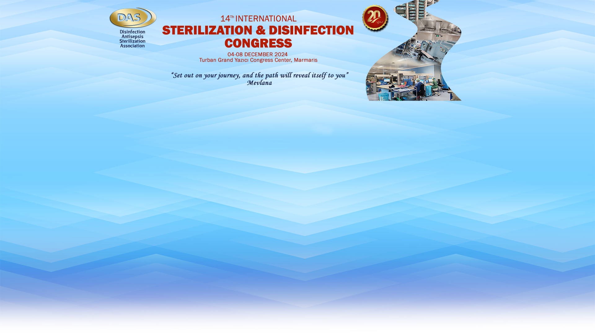 We are delighted to invite you to the 14th Sterilization and Disinfection Congress, which will take place in Marmaris, Mugla, from December 4th to 8th, 2024. The theme of this years congress is inspired by the wise words of Mevlana: Set out on your journey, and the path will reveal itself to you. This inspirational saying emphasizes the importance of taking action and making efforts. It symbolizes courageously overcoming obstacles and challenges. Prof. Dr. Guven Celebi Congress president Zonguldak Bulent Ecevit University, Faculty of Medicine, Department of Infectious Diseases and Clinical Microbiology