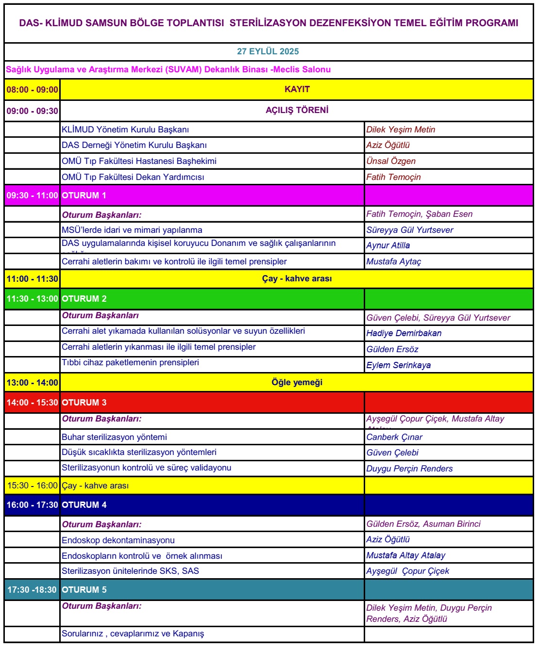 Dezenfeksiyon Antisepsi (DAS) Derneği, Klinik Mikrobiyoloji Uzmanlık Derneği (KLİMUD) ve Ondokuz Mayıs Üniversitesi (OMÜ) işbirliği ile 27-09-2025 tarihinde Samsun Ondokuz Mayıs Üniversitesi evsahipliğinde Sağlık Uygulama ve Araştırma Merkezi (SUVAM) Dekanlık binasındaki "Meclis salonu"nda gerçekleştirilecektir.